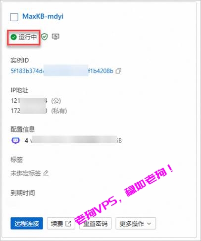 支付完成后,单击进入管理控制台。当服务器状态由准备中变为运行中,表示MaxKB服务器已经部署成功。