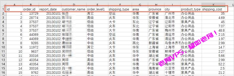 说明:如果您的数据没有唯一的ID列,建议在最前方添加一列作为主键,便于以后进行存储和查询。