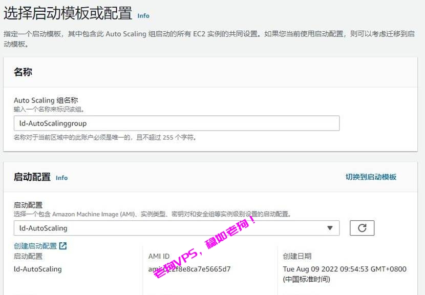 - 在 Choose launch template or configuration(选择启动模板或配置)页面上,对于 Auto Scaling group name(Auto Scaling 组名称),输入 Auto Scaling 组的名称。