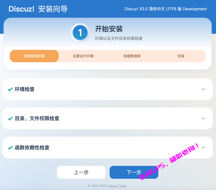 打开浏览器,输入您的云服务器公网IP地址,进入Discuz的安装界面。按照提示填写数据库信息(数据库名、用户名、密码等)和站点信息,点击下一步直至安装完成。