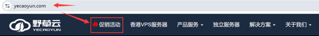 购买入口:访问野草云官网首页→点击导航栏“促销活动”→2026促销页面,如图↓